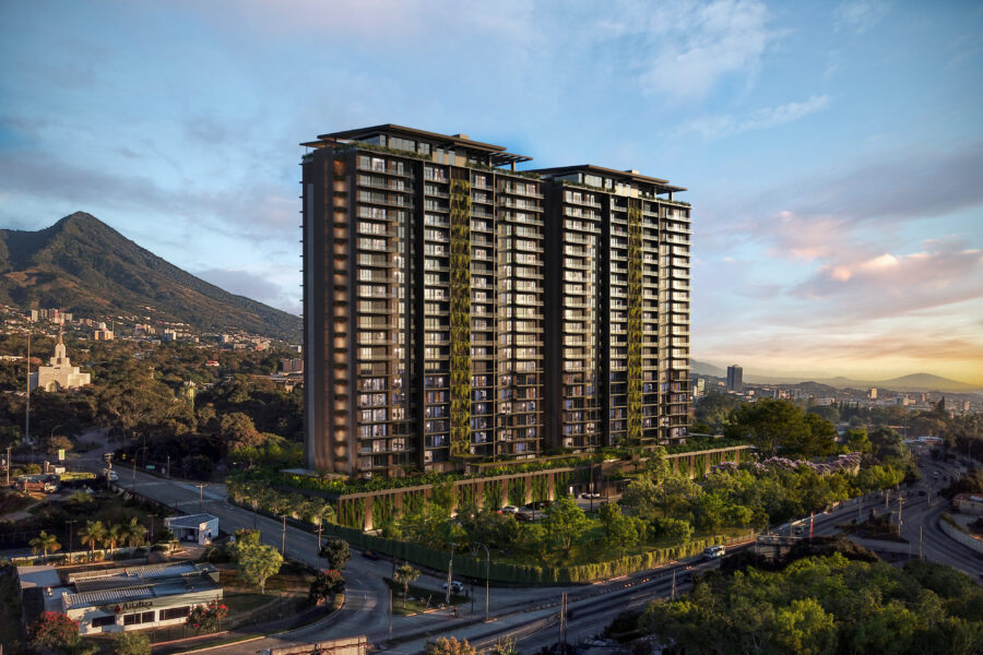 Las unidades habitacionales cuentan con balcones, tres elevadores por torre, lobbies en terraza, así como un ‘skylounge’ con vista a la cordillera del Bálsamo y el volcán de San Salvador.