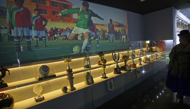 Entre los objetos que se exhiben hay fotografías de paisajes bolivianos, así como de Morales, las camisetas y balones que le obsequiaron clubes de fútbol suramericanos y europeos y la emblemática chompa (jersey) de rayas azules y rojas que usó en su primera gira internacional como presidente electo en 2005.