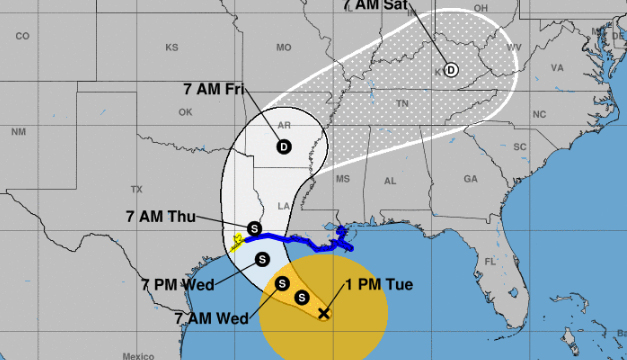 Se mantiene un aviso de tormenta tropical (paso en 24 horas) hacia el oeste desde High Island, en Texas, hasta la desembocadura del río Pearl, y una vigilancia de tormenta desde el oeste de High Island hasta San Luis Pass.