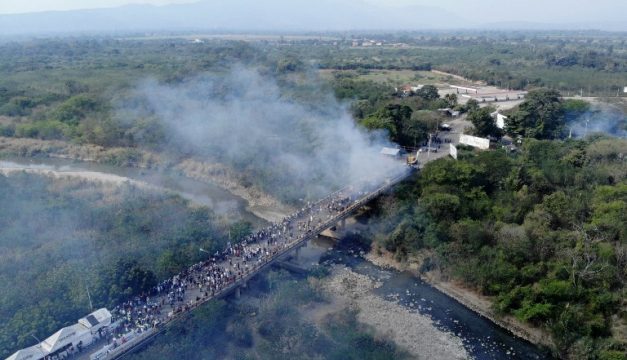 Al menos 42 heridos dejan los disturbios que se desataron en el principal puente fronterizo entre Colombia y Venezuela, por donde la oposición intenta ingresar ayuda básica pese al bloqueo de fuerzas venezolanas, según una fuente de socorro.