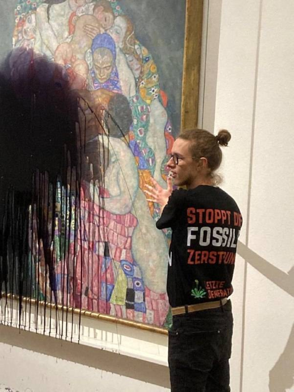 Activistas ecologistas rociaron este martes con un líquido negro el famoso cuadro "Muerte y vida" del pintor austríaco Gustav Klimt, informó el Museo Leopold de Viena.