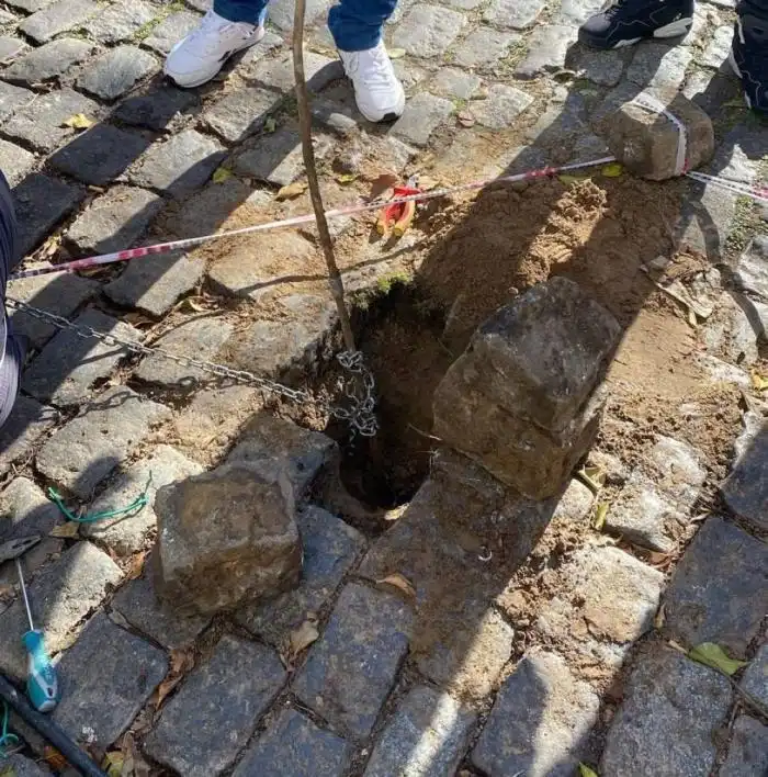 La investigación se inició cuando, en la mañana del miércoles, un conductor estacionado escuchó un ruido en el chasis de su vehículo y comprobó que se debía a una varilla metálica que emergía entre los adoquines de la calle.