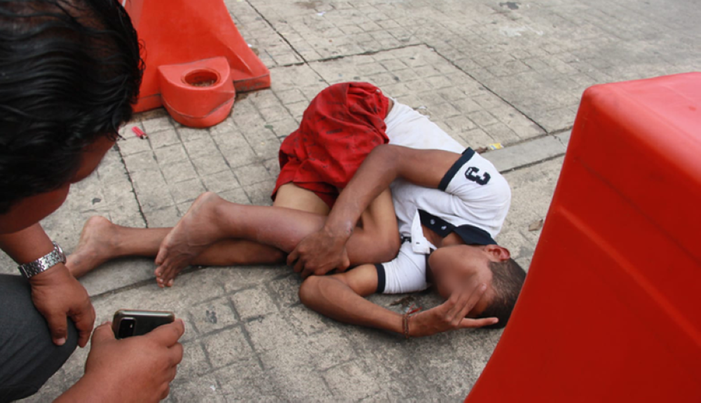 Tirado en el piso, con una grave herida en el pie y débil ante la falta de alimentación, así pasa los días el salvadoreño José Luis Moreno de 23 años, recostado en un cruce peatonal del Centro Histórico de Villahermosa, en el estado mexicano de Tabasco.