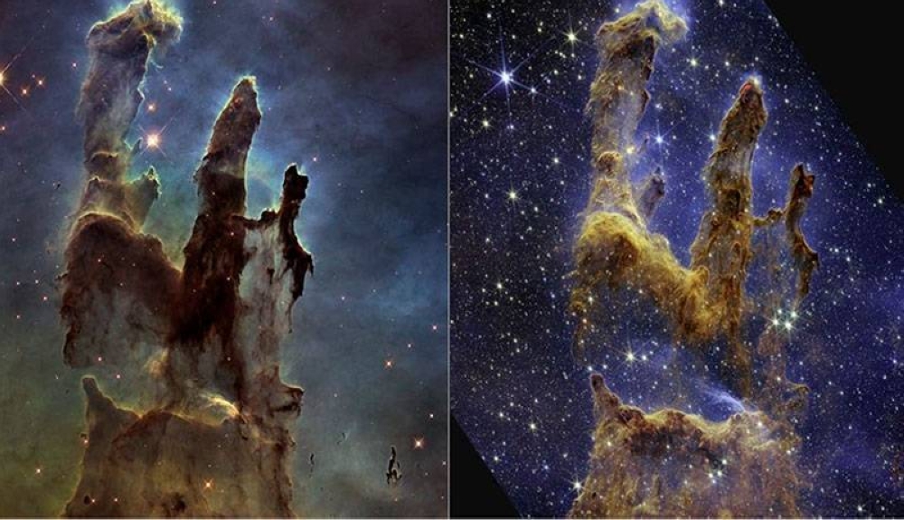 Pero gracias a las capacidades infrarrojas del James Webb, el telescopio más potente y moderno del mundo lanzado al espacio hace menos de un año, se puede ver a través de la opacidad de los pilares, revelando la formación de muchas estrellas nuevas.