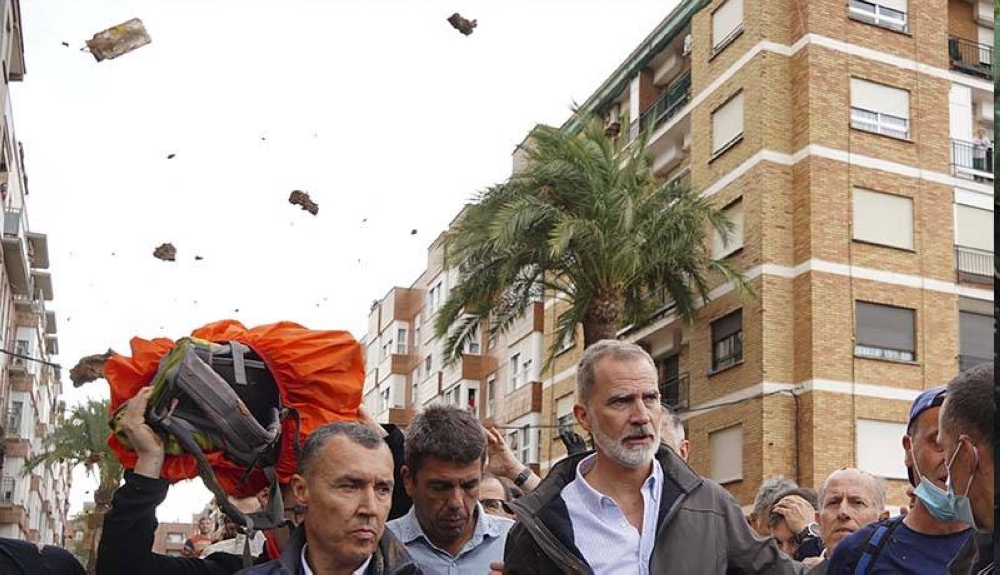Los reyes Felipe VI y Letizia y la comitiva de autoridades que les acompañaban este domingo en su visita a Paiporta, Valencia, fueron recibidos con gritos, insultos y con lanzamiento de objetos y barro durante su recorrido por las calles de la localidad.