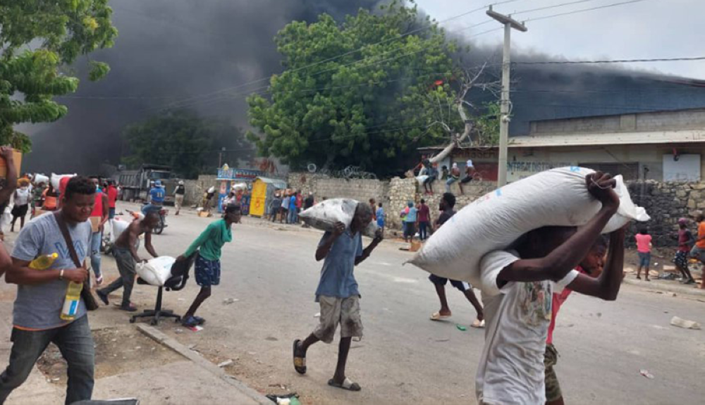 Instalaciones de almacenamientos del Programa Mundial de Alimentos en Gonaïves, Haití está en llamas. #Haití pic.twitter.com/wVl99cRcGz