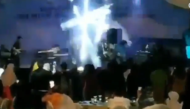 En el video se pueden ver a los espectadores que aplauden y celebran a los músicos antes de que una ola los sorprenda por la parte detrás de la tarima, los ahoga con sus equipos y avanza sobre el público que estaba bailando. Luego el video se detiene.
