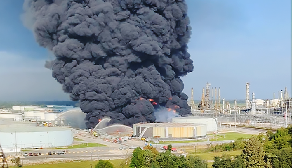 Marathon Petroleum Corporation propietaria del complejo incendiado aseguró que el incendio está contenido en la propiedad de la refinería y que un bombero está siendo evaluado por estrés por calor.