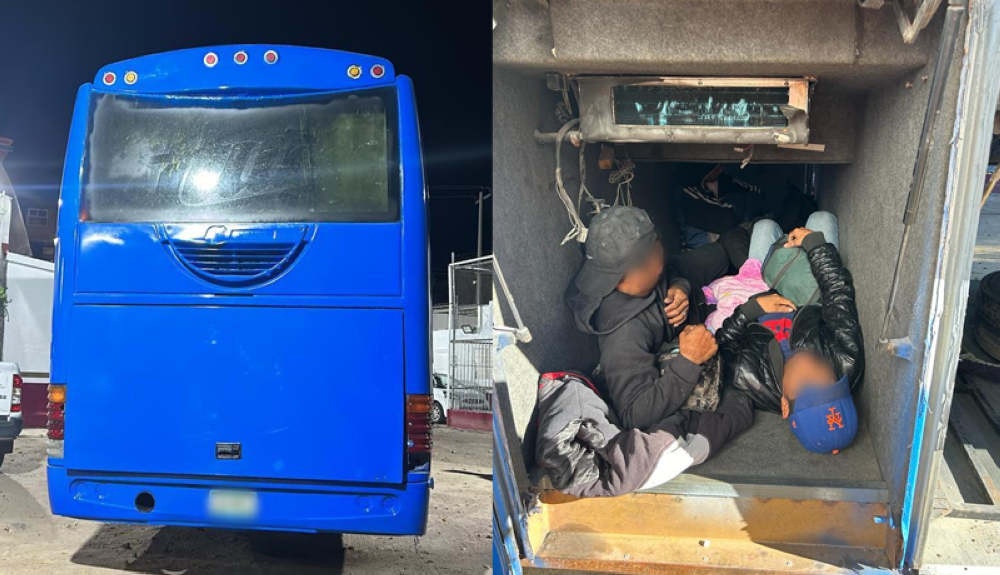 También informaron que tres adultos fueron localizados ocultos en el maletero del autobús.