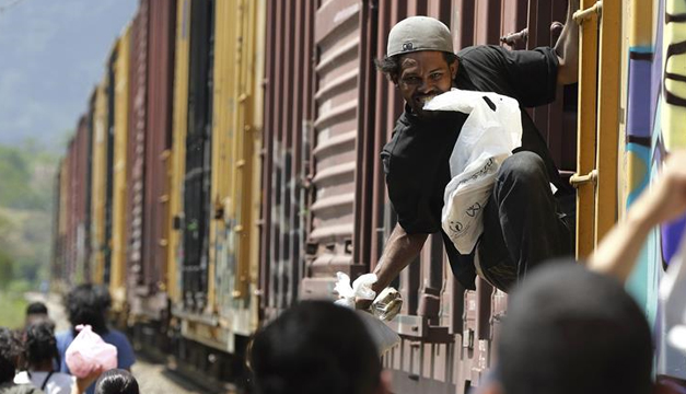 A veces, algún conductor benevolente reduce la velocidad del tren para facilitar la entrega de comida y, en apenas tres minutos, La Bestia se aleja rumbo al norte.
