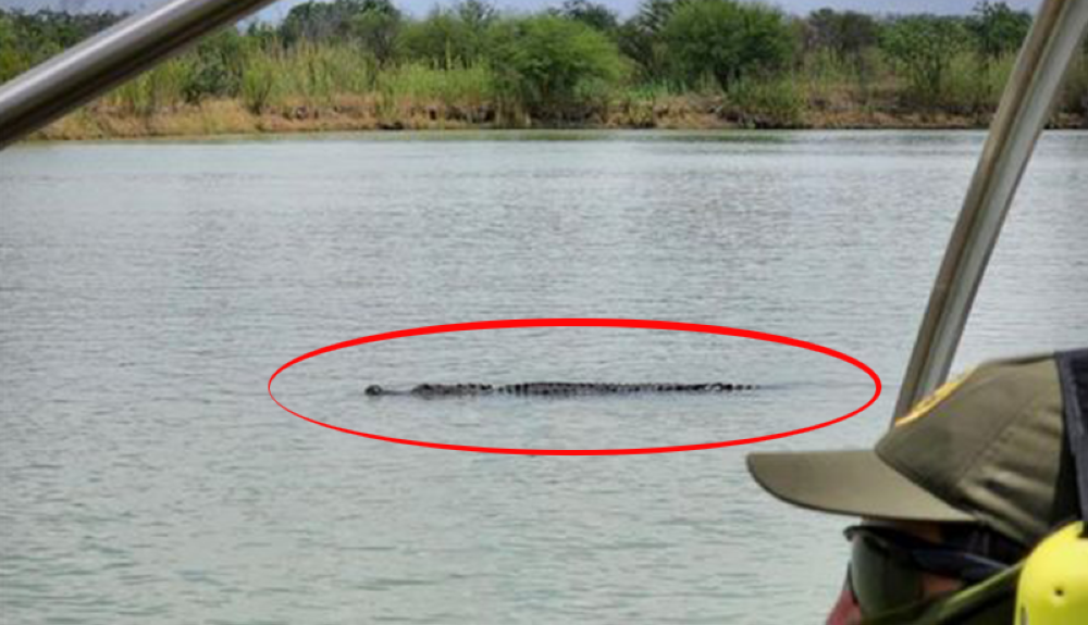La agencia publicó en su cuenta de Facebook una fotografía del reptil de unos tres metros de largo mientras se sumerge en las agua del río Grande, un afluente entre Texas y México por donde cruzan decenas de migrantes cada día.