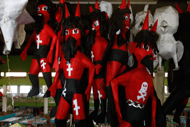 Pero la fiesta ya no solo es religiosa o ambientalmente consciente. En los últimos años, las piñatas del diablo también se convirtieron en un vehículo de expresión política. Figuras como la fiscal general Consuelo Porras, sancionada por Estados Unidos y la Unión Europea por supuesta corrupción, han sido representadas en caricaturas de papel que arden simbólicamente frente al público.