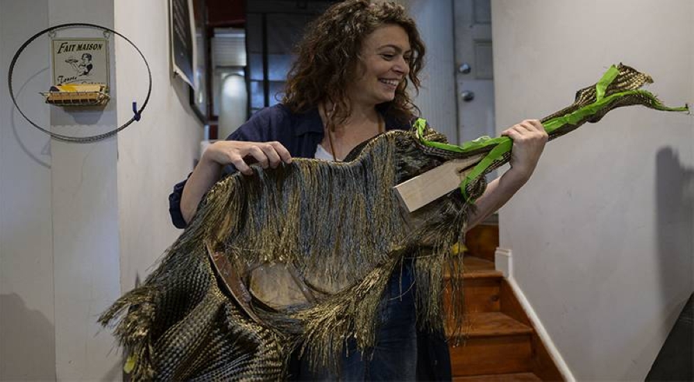 Esta diseñadora industrial de formación, empezó su carrera como lutier -fabricante de instrumentos de cuerda- hace aproximadamente una década. En los últimos años ha recurrido al micelio y otros biomateriales para fabricar instrumentos más respetuosos con el medioambiente y sin plásticos.