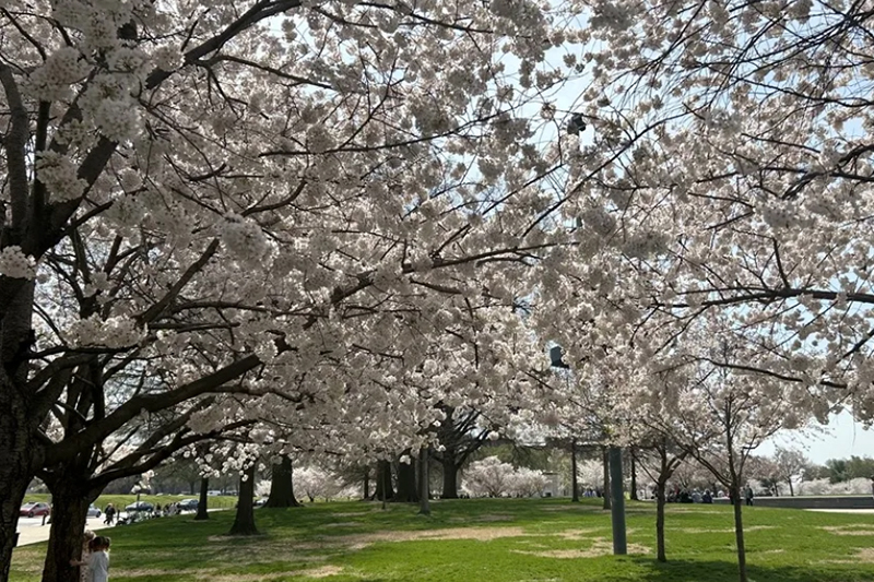 En cuestión de semanas, Washington ha pasado de las heladas y la nieve acumulada a un inusual veranillo, con máximas cercanas a los 30 grados centígrados a finales de febrero, un brusco giro que aceleró el desarrollo de los botones florales y ha desencadenado la explosión de pétalos en la última semana de marzo.