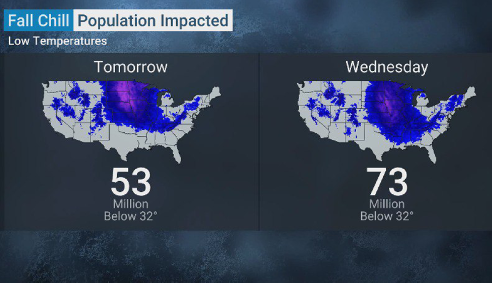 Millions are expected to see their temps dip below freezing this week. We're LIVE with your city's weather! pic.twitter.com/sOyk5UbfFc