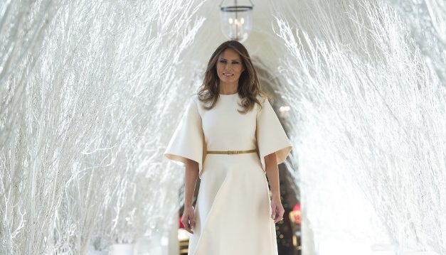 Melania, a quien un niño le dijo "Ángel" en una recepción, para la inauguración de su particular cuento de Navidad y honrar la tradición. La eslovena se descantó por un vestido Dior, que guarda muchas similitudes con el diseño azul marino que lució recientemente en su tour asiático.