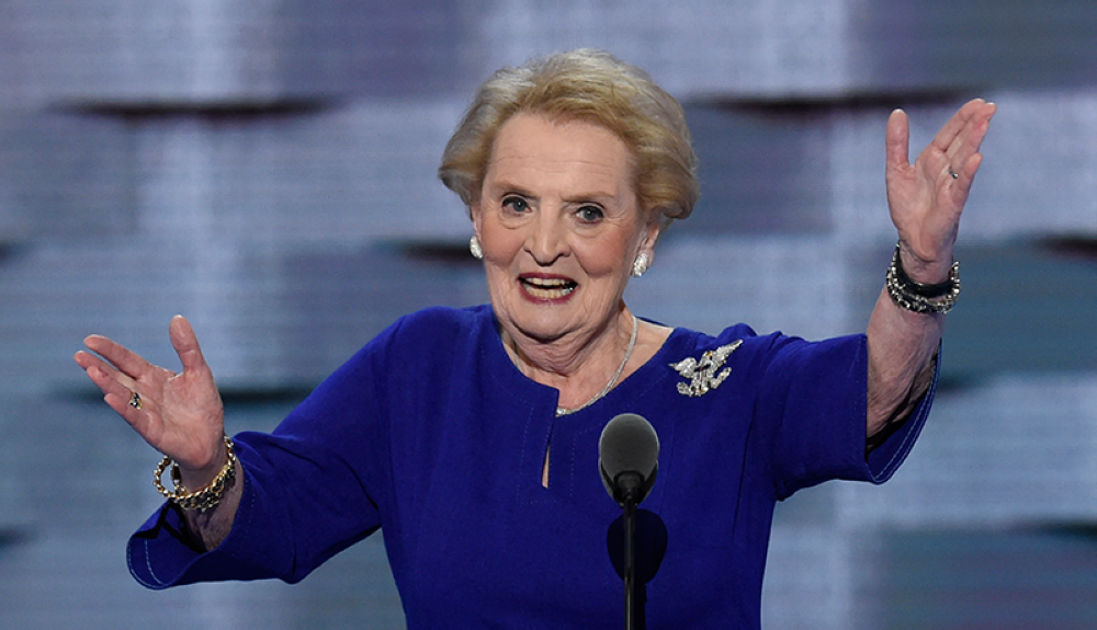 Foto tomada el 26 de julio de 2016, la exsecretaria de Estado de los Estados Unidos, Madeleine Albright, termina su discurso en el segundo día de la Convención Nacional Demócrata en el Wells Fargo Center, en Filadelfia, Pensilvania.AFP
