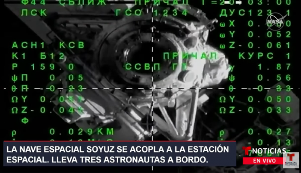 Antes de pegarse a la EEI, la nave Soyuz fue captada con impresionantes imágenes de fondo de la región de Marruecos, y su llegada al mega laboratorio espacial ocurrió cuando se encontraban frente al sur de Rusia, tras tres horas de vuelo transmitidas en directo por la NASA.