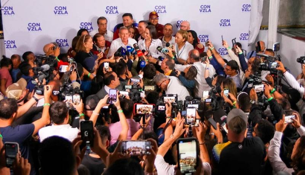 "Queremos pedirle a todos los venezolanos que se queden en su centro de votación. Que estén allí en comunidad, en vigilia. Hemos luchado todos estos años para este día. Estos son los minutos cruciales. Las horas definitivas. Necesitamos que todos los venezolanos estén en su centro de votación acompañando a los miembros de mesa y a los testigos que conocen muy bien cuál es su tarea y sus derechos", declaró durante una rueda de prensa.