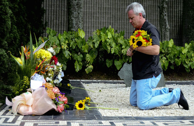 Entonces, con un ramo de flores en las manos y de rodillas frente a la tumba de Escobar, se presentó como un criminal arrepentido.