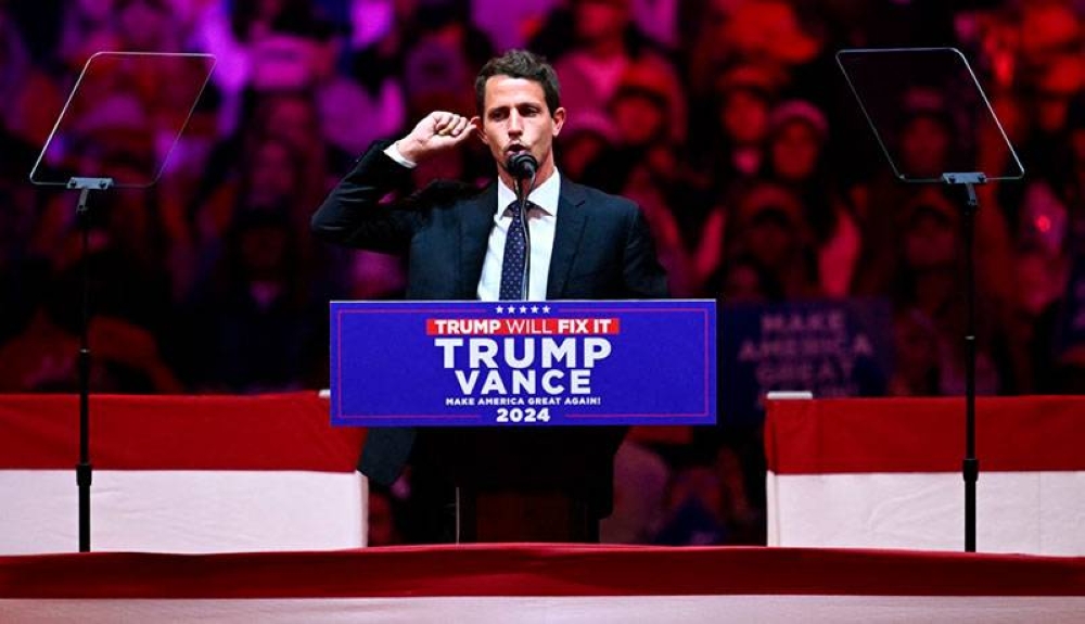 Tony Hinchcliffe fue uno de los teloneros del mitin celebrado el domingo en el Madison Square de Nueva York, abarrotado por seguidores del candidato republicano a las elecciones presidenciales del 5 de noviembre.