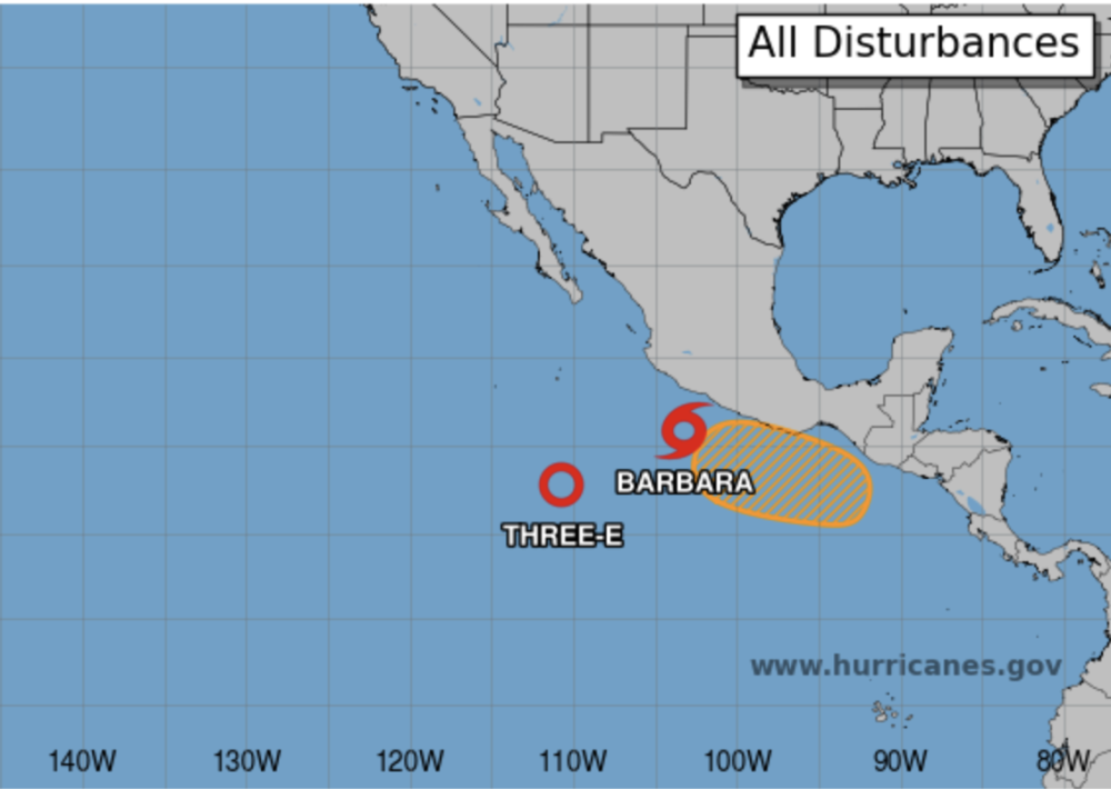 "Barbara mantiene su desplazamiento hacia el oeste-noroeste. Su amplia circulación ocasionará lluvias fuertes a puntuales muy fuertes acompañadas con descargas eléctricas, fuertes rachas de viento y oleaje elevado en el oeste y sur del territorio mexicano", apuntó el SMN en su más reciente comunicado.