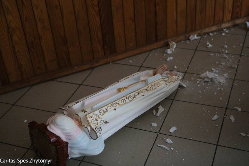 Según el Obispo de la diócesis de Kyiv-Zhytomyr, Monseñor Vitaliy Kryvytskyi, los soldados rusos robaron todos los objetos de valor que se encontraron a su paso. Además destrozaron imágenes religiosas, entre ellas una escultura de la Virgen de Fátima.