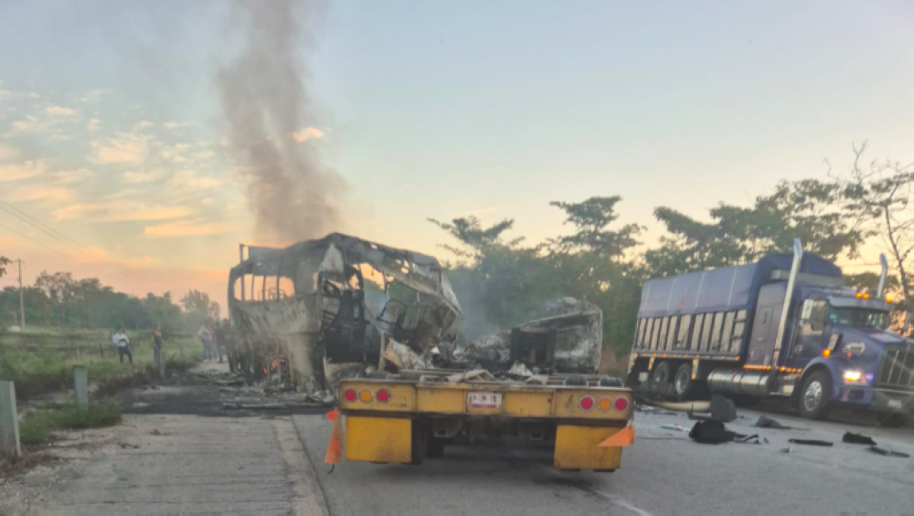 Cancún.- Solo ocho personas sobrevivieron en el accidente del autobús de transportes “Tour’s Acosta”, cuando un tráiler invadió el carril y lo impactó, ambas unidades fueron consumidas por el fuego, por tal... pic.twitter.com/288QnJVFoD