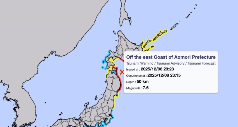 La JMA activó una alerta de tsunami de hasta 3 metros de altura para las costas de la prefectura de Aomori, la vecina Iwate y la punta sur de la isla de Hokkaido, la más septentrional del archipiélago, que se prevé que llegue pasada la medianoche local.