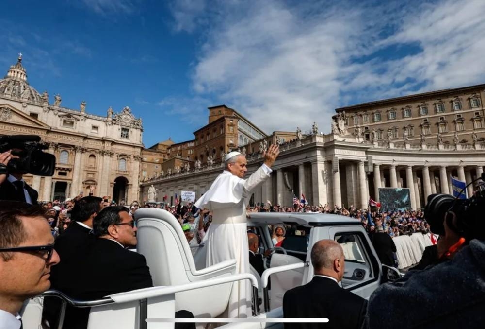 Entre un rígido cordón de seguridad, fieles y turistas se congregaron en la plaza, sus alrededores y la emblemática vía de la Conciliación que lleva hasta San Pedro, pendientes desde varias pantallas gigantes a los movimientos y la homilía del pontífice, al que también vieron pasar por primera vez en el simbólico papamóvil.