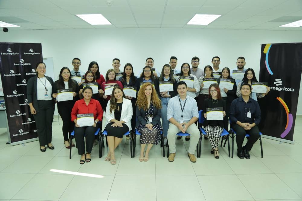 La primera generación de la Escuela de Cajeros de Bancoagrícola se graduó en junio de 2023. / cortesía