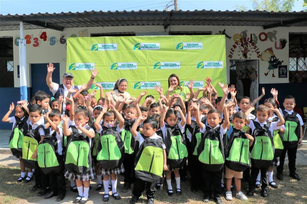 Con esta iniciativa el SISTEMA FEDECRÉDITO ha logrado apoyar desde el año 2013, a cientos de niños y jóvenes que tienen el deseo de superarse y salir adelante con sus estudios. Cada mochila entregada contenía: cuaderno, squezze, pegamento, un lápiz, una regla, dulces y un frasco de alcohol gel.