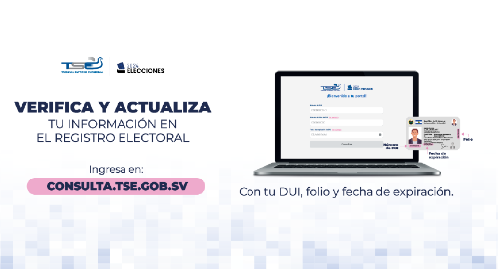 El Tribunal Supremo Electoral de El Salvador insta a todos los ciudadanos a verificar y actualizar su información electoral antes del cierre de este proceso en 5 días, para asegurar un proceso electoral transparente y democrático en 2024.