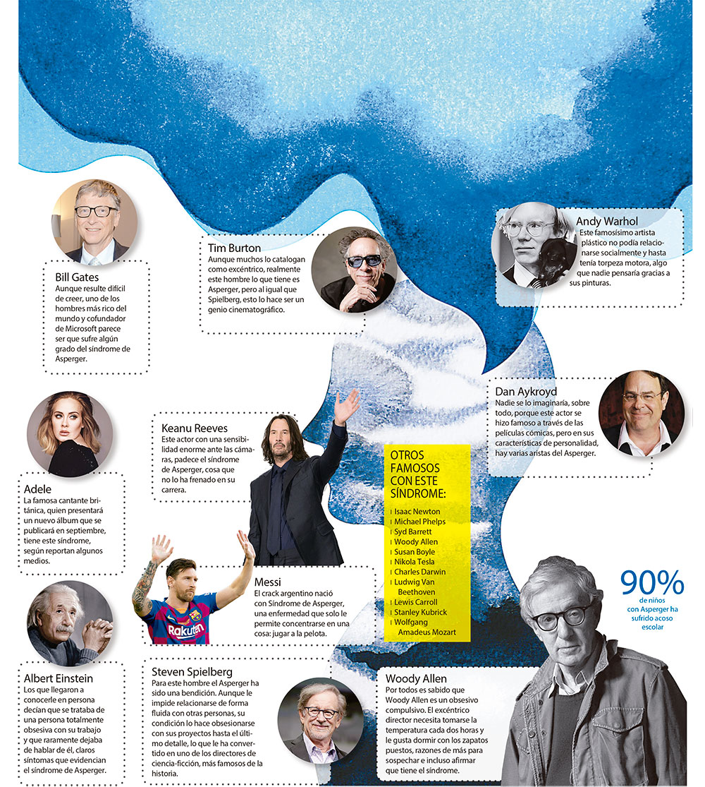 Eso sí, tener Asperger no implica dejar de destacar, más bien todo lo contrario. Son muchas las personalidades famosas que tiene este cuadro neurológico. Algunas de ellas son: