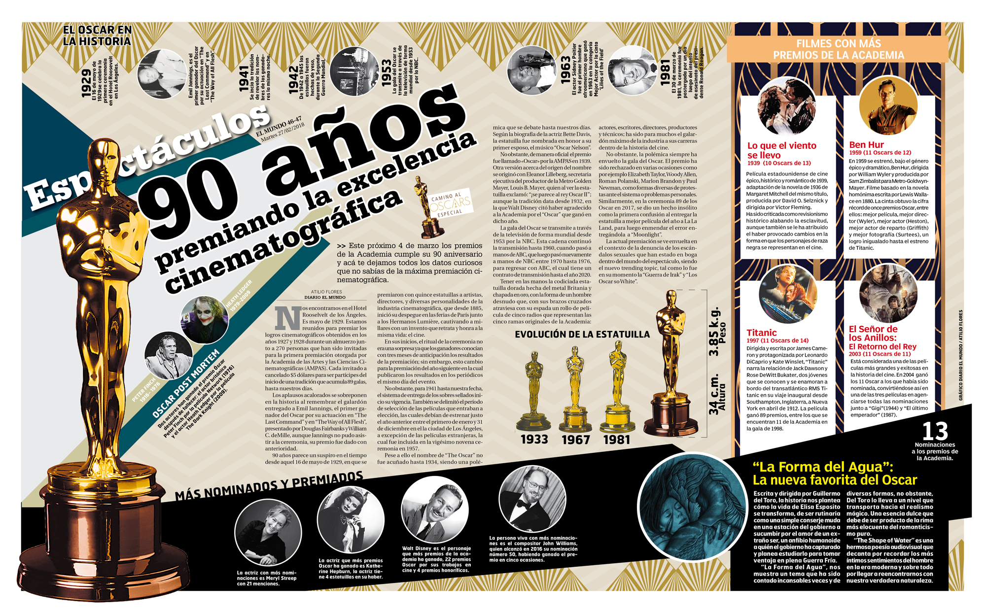 90 años parece un suspiro en el tiempo desde aquel 16 de mayo de 1929, en que se premiaron con quince estatuillas a artistas, directores, y diversas personalidades de la industria cinematográfica, que desde 1885, inició su despegue en las ferias de París junto a los Hermanos Lumière, cautivando a millares con un invento que retrata y honra a la misma vida: el cine.