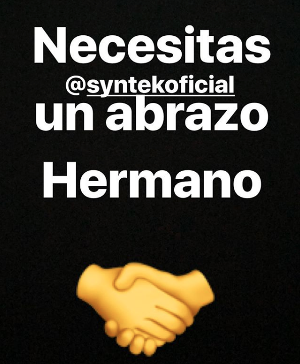 Además, agregó con la publicación “necesitas cariño, afecto y mucho amor!!! @syntekoficial como latino por favor no pelees, solo acepta las diferencias eleva tu conciencia lo que llamamos TOLERANCIA. Vamos a enviarle abrazos".