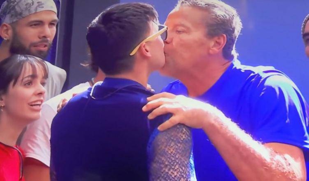 Y es que algunas de las chicas retaron al joven Pedro Luis Joao Figueira, "La Divaza", a darle un beso en la mejilla a Adame, de 65 años, a lo que el actor accedió sin problemas. Pero luego él mismo retó al influencer a darse un beso de piquito, mismo que fue celebrado entre todos sus compañeros famosos.