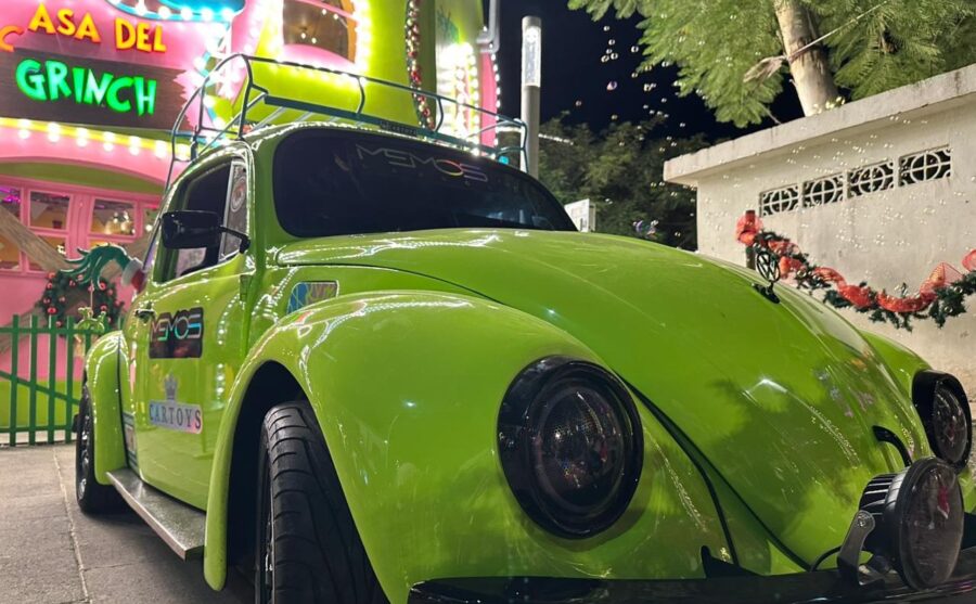 El clásico Volkswagen verde con el que el Grinch sorprendió hace algunos días llegando al Centro Histórico de San Salvador, fue recuperado en sólo tres semanas, según compartió el taller Memos Garage.