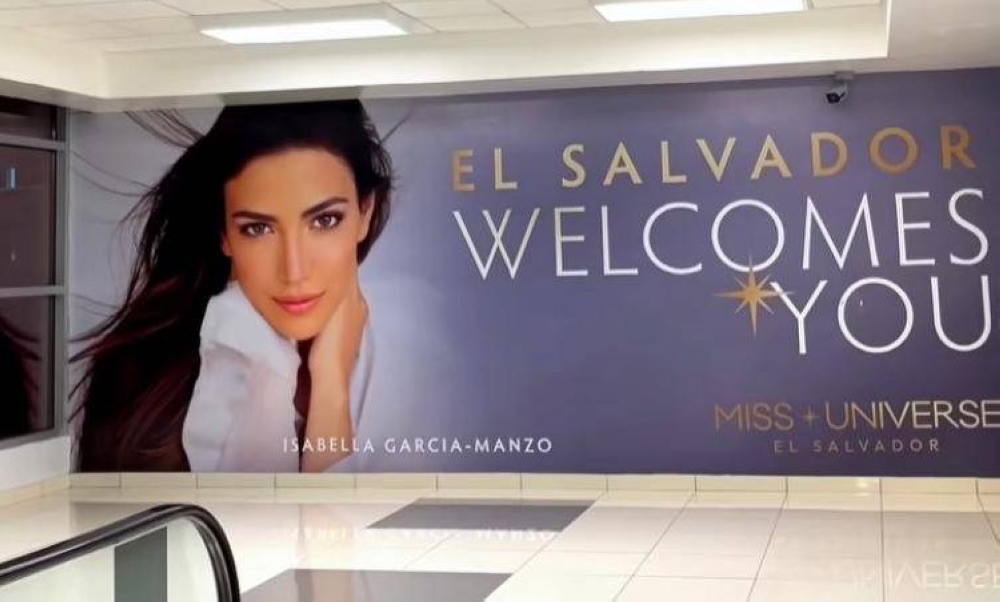 La imagen de la Miss El Salvador Isabella García-Manzo y de la 72 edición del evento Miss Universo dan la bienvenida a los viajeros estos días en el Aeropuerto Internacional San Óscar Arnulfo Romero y Galdámez, según compartió el Instagram de Miss Universo El Salvador.