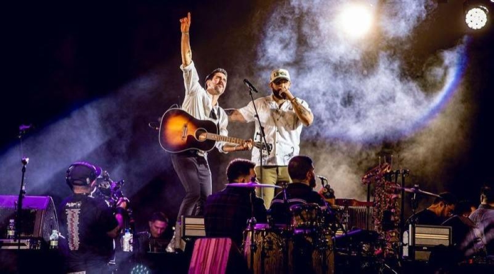 El artista se acompañó del reconocido Alex Ubago (izq.), entre otros invitados.