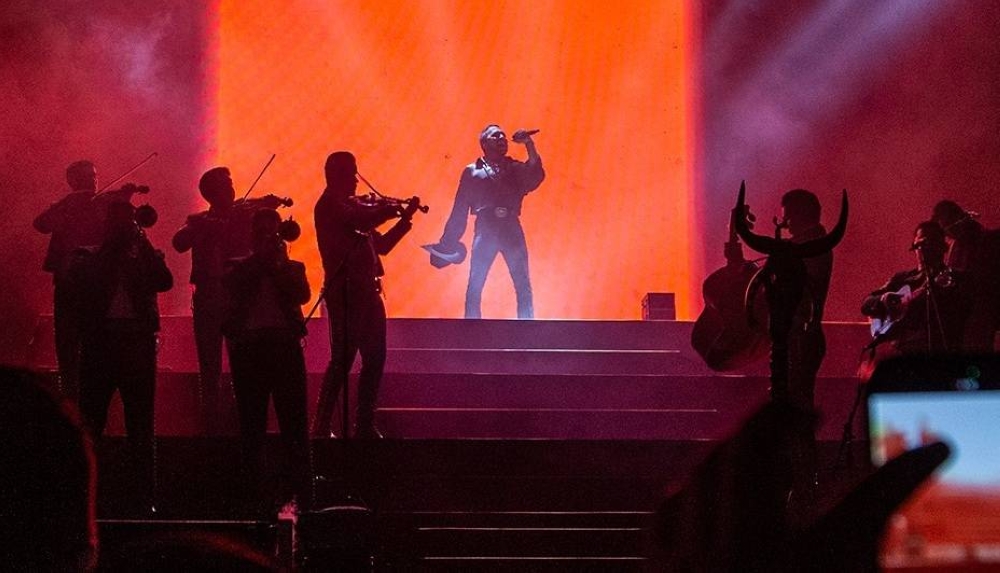 Eran las 9:30 de la noche cuando la amenazante nube que cubrió San Salvador la noche de este jueves dejó caer sus gotas más fuertes... ese fue el preciso momento en que Christian Nodal, el cantautor mexicano más prolífico de la nueva generación, ascendía en una pirámide prehispánica en el escenario de su concierto, en el Estadio Cuscatlán.