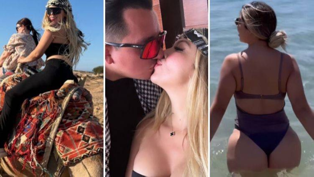 Ataviada con un turbante y montada sobre camellos, caballos o hasta una cuadrimoto, la empresaria migueleña ha recorrido el desierto del Sáhara y las pirámides de Giza, en un viaje de película, donde parece toda una espía con su sensual figura.