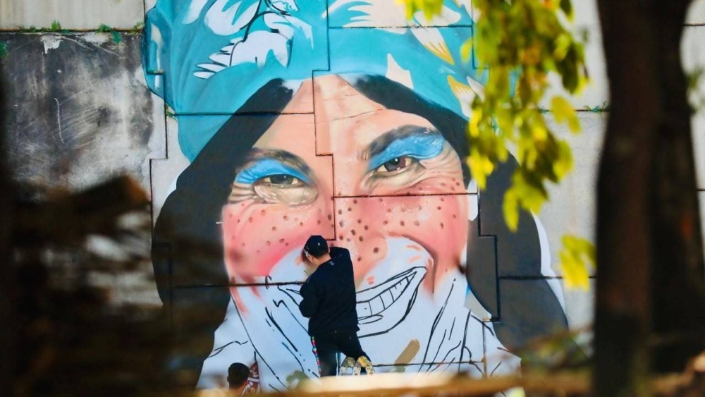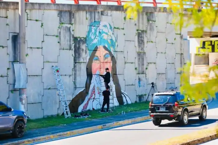 TNT elabora el mural que exhibirá la imagen del querido personaje salvadoreño. Fotos: FB Alcaldía de Santa Tecla.