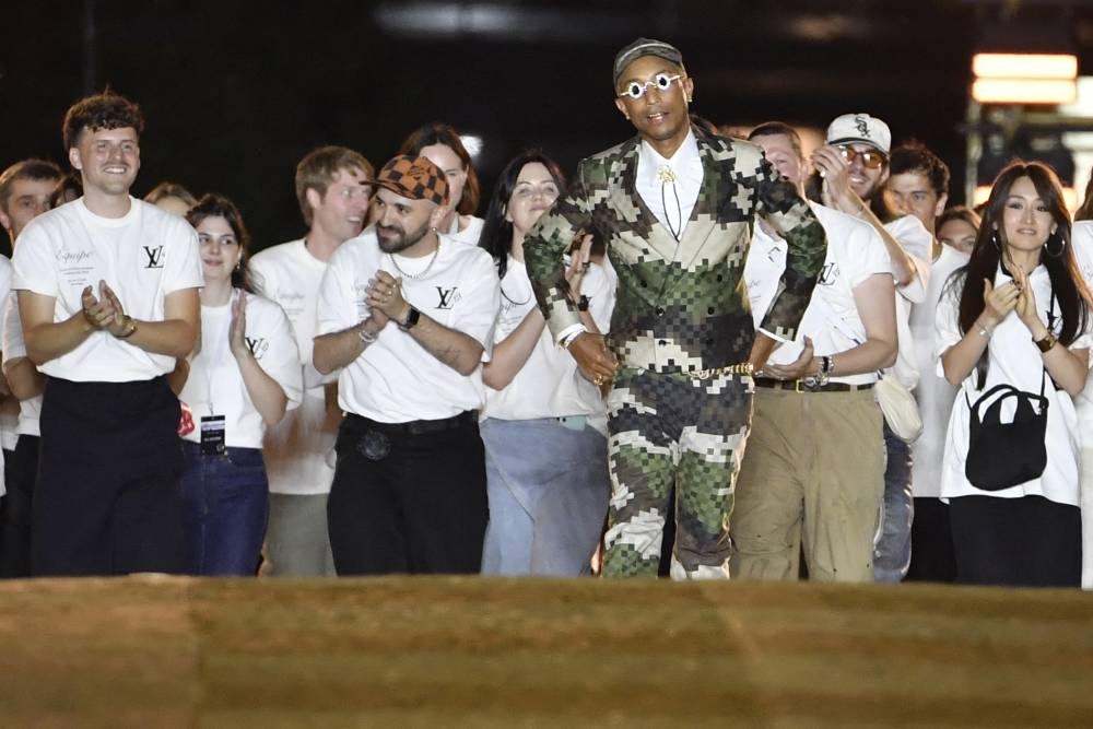 El músico y estilista estadounidense Pharrell Williams le puso ritmo de góspel y hip hop este martes a su primer desfile para la firma de lujo francesa Louis Vuitton, con mil versiones del conocido estampado en forma de damero de la marca, ante un parterre colmado de estrellas.