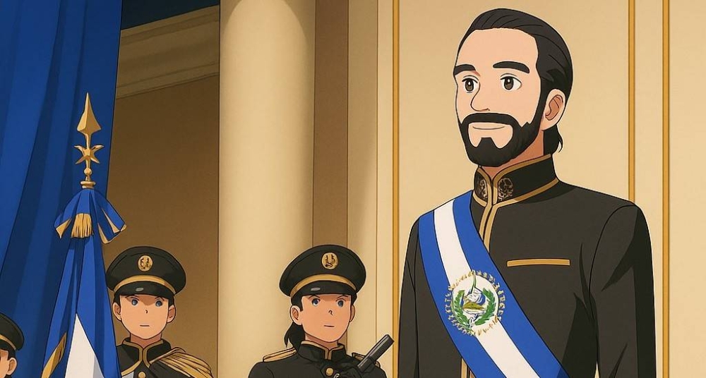 Cabe mencionar que la imagen seleccionada para la animación fue la de Bukele, de 43 años, en su ceremoniosa toma de posesión presidencial, el 1 de junio de 2024, en el Palacio Nacional de San Salvador, donde lució un recordado traje de tonos franceses o bien árabes, creado por la diseñadora Marina Toybina, ganadora del premio Emmy.