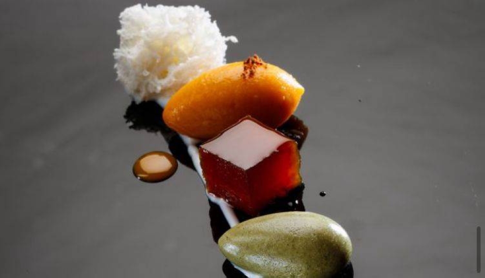 La propuesta de Disfrutar es básicamente lúdica, con presentaciones de platos de origen mediterráneo que juegan con los colores, muy vivos, y combinaciones atrevidas de gustos.