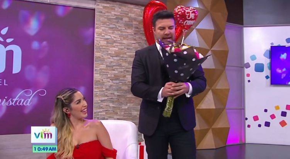 La TV nacional y las redes sociales se saturaron de corazones, rosas y peluches este miércoles de San Valentin, fue así como el presentador Henry Urbina sorprendió al aparecer en un segmento del programa "Viva la Mañana" con un globo de corazón y un ramo.