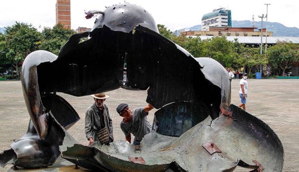 El artista decidió entonces conservar la obra deshecha como un “monumento a la imbecilidad y a la criminalidad de Colombia”, según dijo tras la bomba.