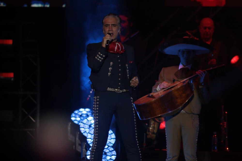 Fue cerca de las 10:00 de la noche que el artista mexicano de 52 años subió a un impresionante escenario, con imágenes de banderas y otros símbolos mexicanos, como el papel picado, flores, calacas, mucho colorido y un mariachi que se quedó junto a él durante toda la presentación.