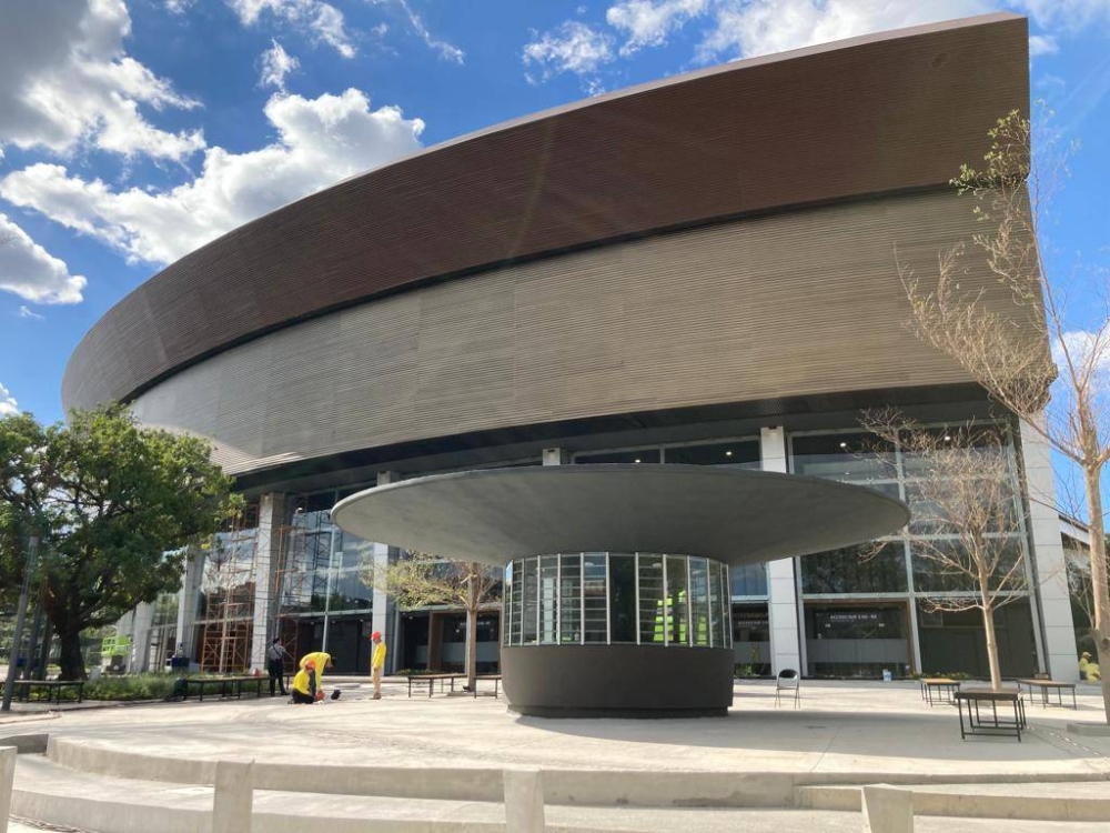 Enmarcado en una cúpula de tonos dorados, el legendario recinto deportivo ahora dará la cara como una lujosa arena para grandes eventos. Su antiguo parque al costado de su fachada, también dará un punto magnífico a su remodelación, con una plaza familiar, oasis libres, una pequeña cafetería, iluminación especial, fuentes danzarinas y una vista del volcán de San Salvador. La plaza también cuenta con un circuito para que los vehículos puedan recoger a las personas en el lugar.